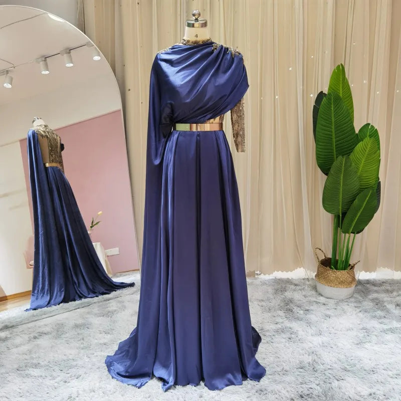 Blue Evening Dresses for Women Wedding Party Elegant Long Sleeves Formal Dress